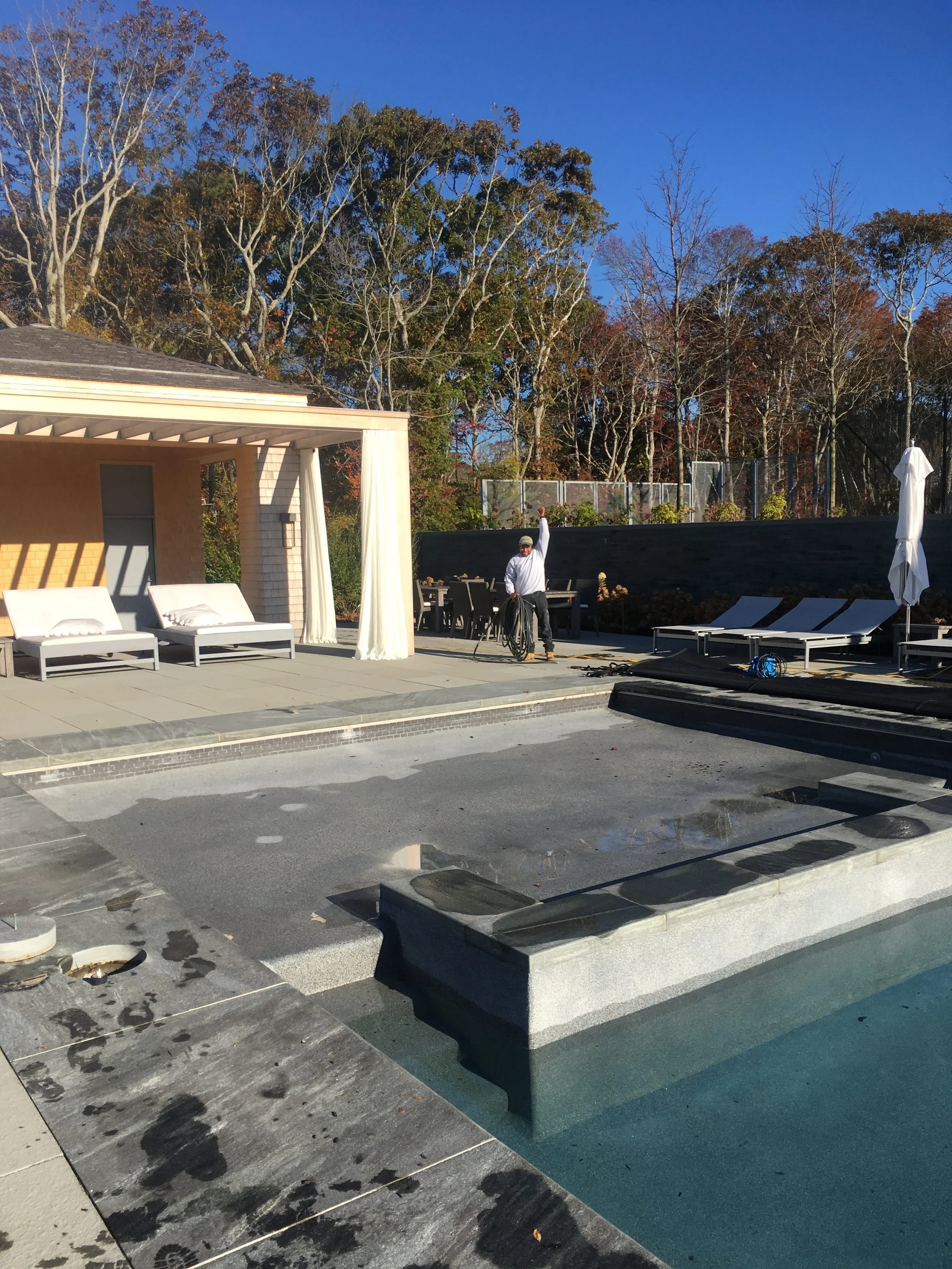 Most common is painting or repainting the pool, which usually consists of fixing imperfections in the surface if applicable, power wash and acid wash the pool and more.